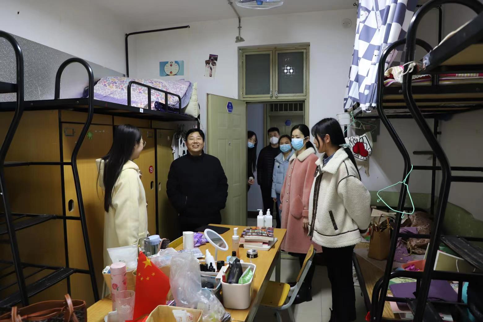 党委书记李海涛、副书记吴若旻以及辅导员、班主任一行深入学生宿舍,看望慰问返校学生。