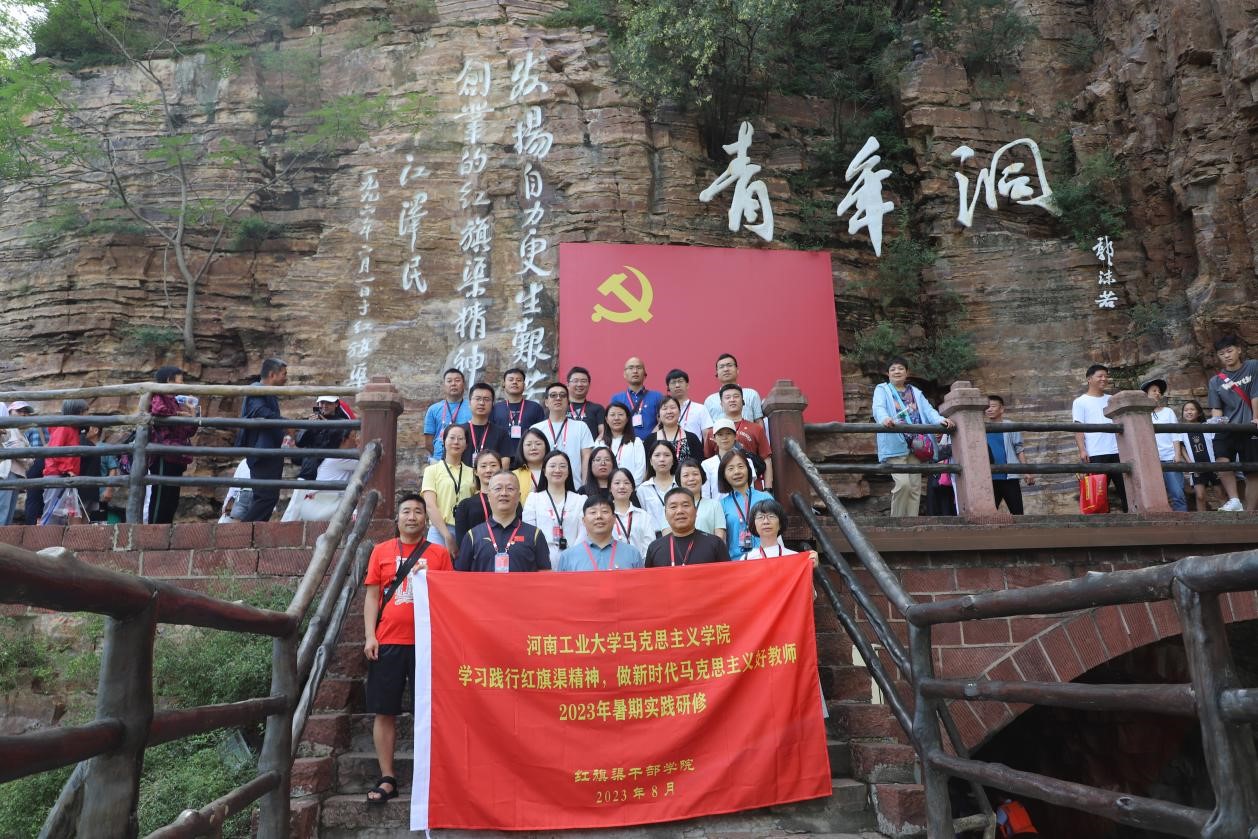 为贯彻落实党的二十大精神、深化学习习近平新时代中国特色社会主义思想,帮助思想政治理论课教师了解国情、开阔视野、提高认识,促进理论与实践相结合,加强对习近平新时代中国特色社会主义思想学习与研究,坚定道路自信、理论自信、制度自信、文化自信,提升思想政治理论课有效性、针对性,2023年8月22日至26日,我校组织思想政治理论课教师赴红旗渠干部学院开展了“学习践行红旗渠精神,做新时代马克思主义好教师”实践教学研修。