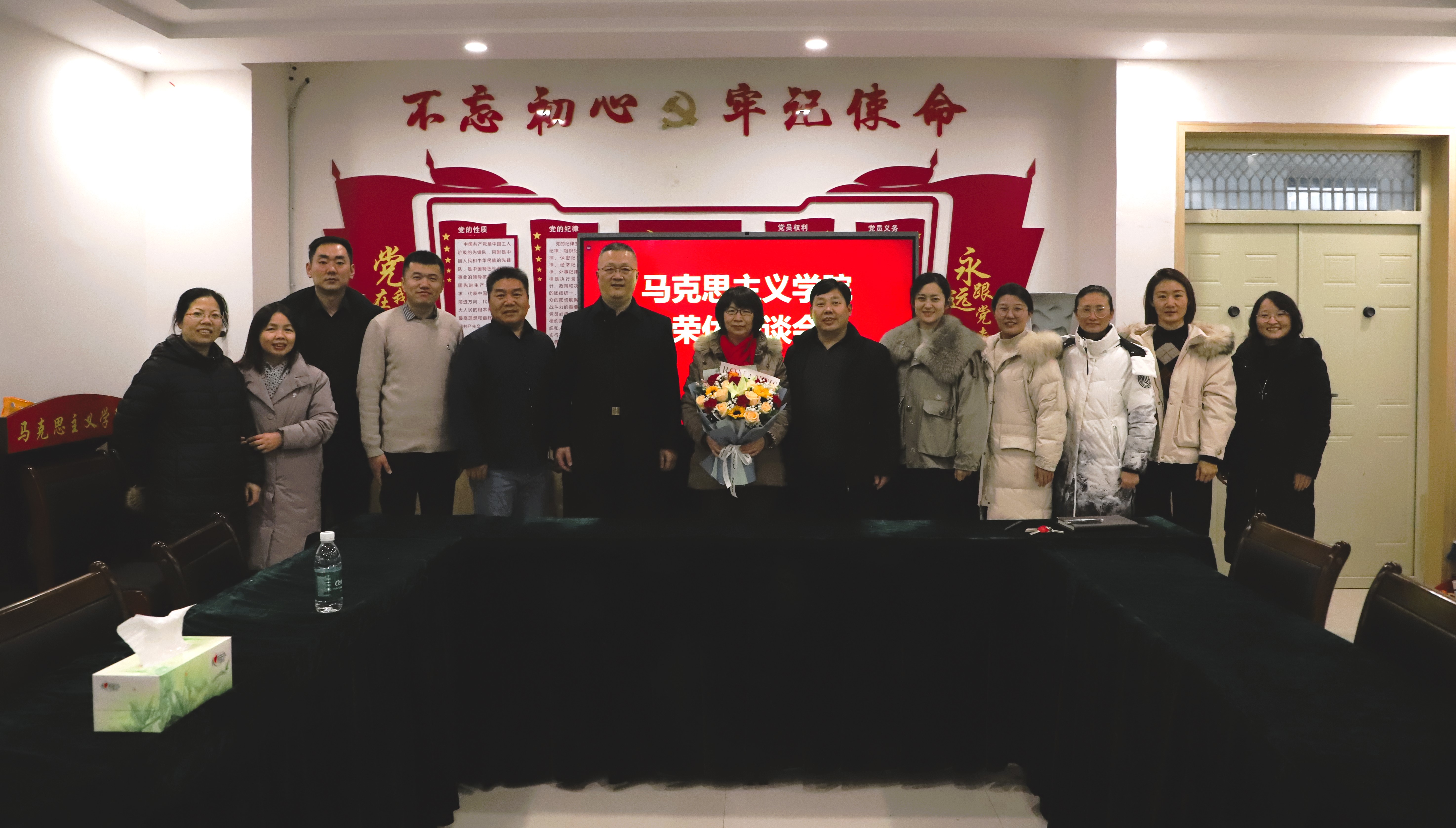 在3512会议室为赵排风教授举办荣休仪式。学院领导班子及教师代表共同见证了这一荣光时刻。座谈会由学院党委副书记吴若旻主持。