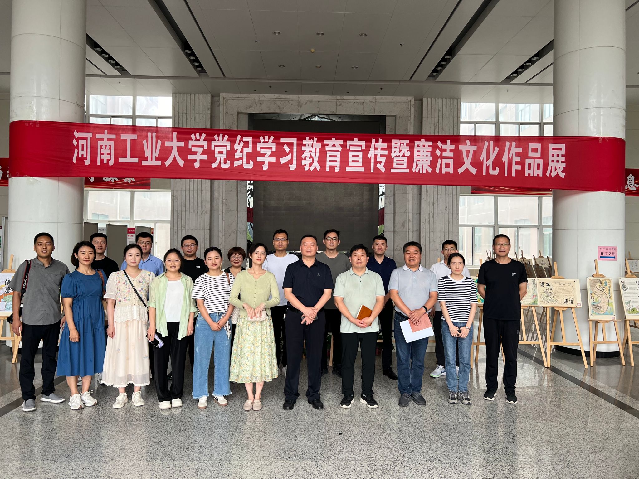 组织师生前往行政楼参观校纪委主办的党纪学习教育宣传暨廉洁文化作品展。