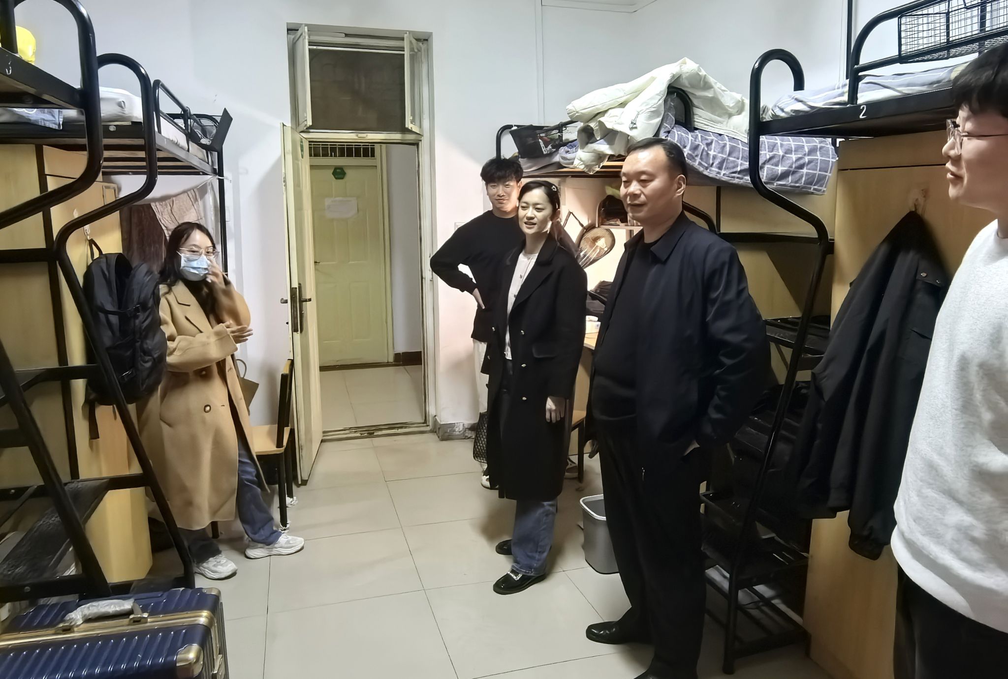 走访过程中,各位老师细心检查了可能存在的安全隐患,记录各个寝室的查寝情况,强调宿舍安全的重要性,并提醒同学们秋冬季节注意保暖。李继周与同学们亲切交谈,了解学生学习生活状况,提醒大家要注意消防安全、财产安全、提高自我保护和防诈意识,日常规律作息、提高身体素质,及时增添衣物,并鼓励大家树立考博思想。副书记吴若旻强调安全意识不可松懈,不要使用大功率电器,不要超负荷使用插板等,确保生命财产安全。