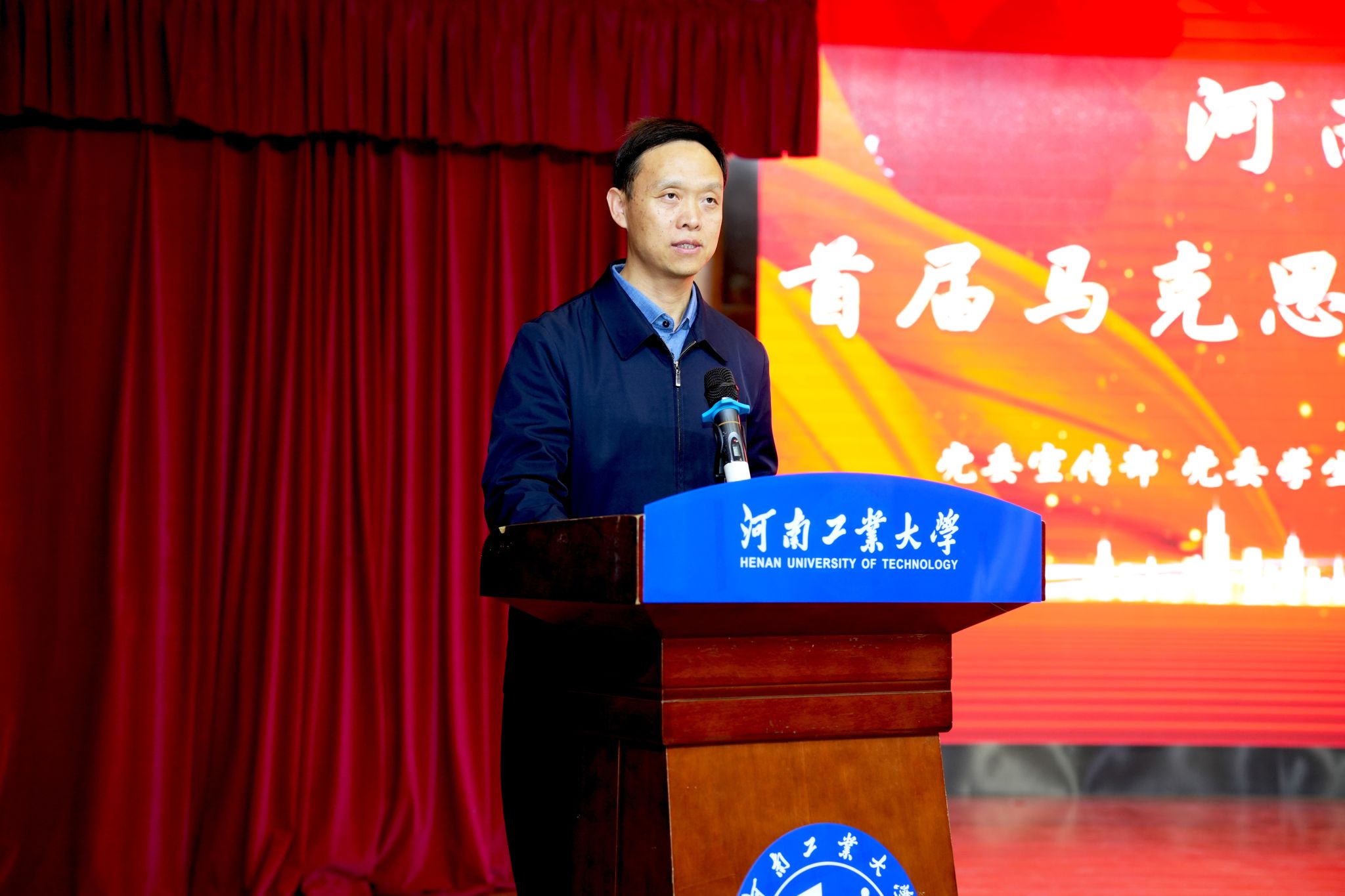 校党委副书记黄泽峰为本次大赛致辞。他指出,马克思主义经典诵读大赛不仅是一场诵读比赛,更是一次精神的洗礼和思想的升华。他强调,经典诵读首先要知道怎么“读”,选择马克思主义理论集中体现的经典书籍,深入探究其深远的历史意义和现实价值;其次要知道怎么“悟”,要从不同角度、不同层面进行解读和分析,并通过研讨会、读书会等方式交流诵读马克思主义经典著作的心得和感悟,拓宽视野和思路;第三要知道怎么“干”,经典诵读的关键是要联系时代、联系实际,要奋勇争先,争做青年标杆。他还鼓励同学们把读经典作为生活习惯,读经典原理,坚定理想信念,激扬青春梦想,为实现中华民族伟大复兴贡献青春力量。