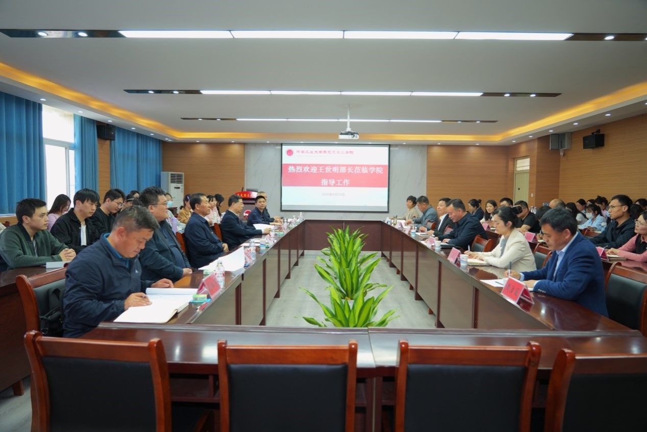 院长李海涛首先就学院基本概况,学科建设、教育教学、科学研究、人才培养、社会服务等方面的具体举措与成效,学院新时期面临的机遇挑战与努力方向等方面向王世明进行了详细汇报。