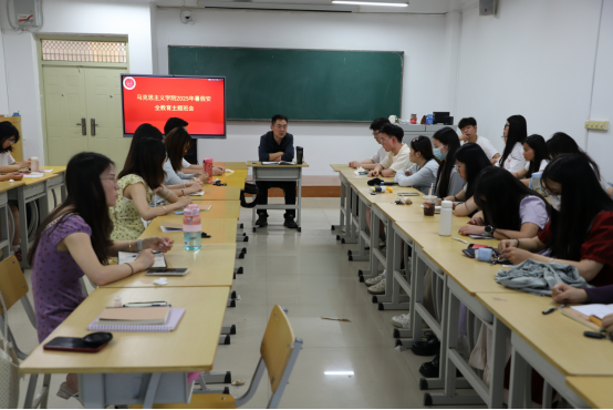 在3616教室召开学期末主题班会,班主任张晓南和全体研究生参加此次班会。
