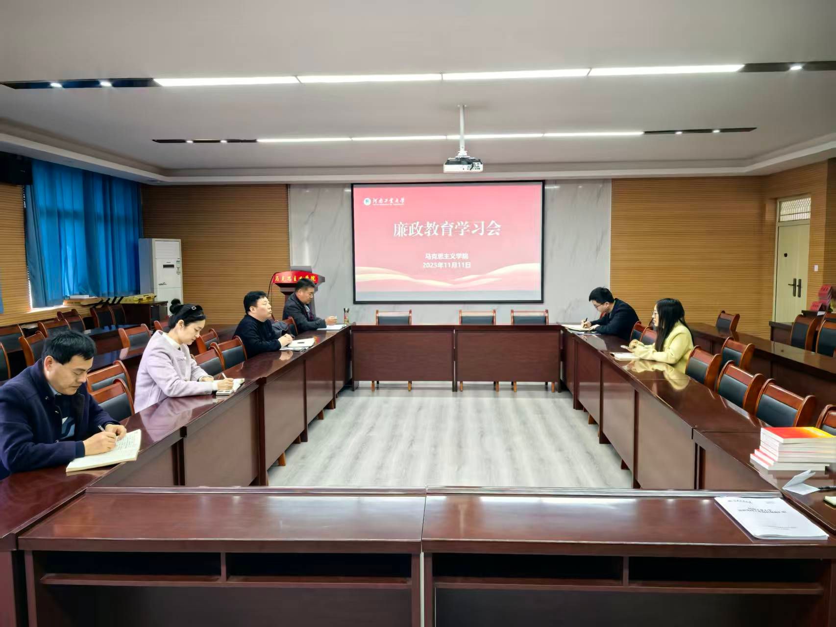 举办廉政学习会,全体学院党政联席会议成员参加。本次会议紧密结合学校正在开展的“廉洁文化教育月”活动主题,通过理论学习和警示教育相结合的方式,进一步强化学院领导班子的廉洁自律意识。会议由院长李海涛主持。