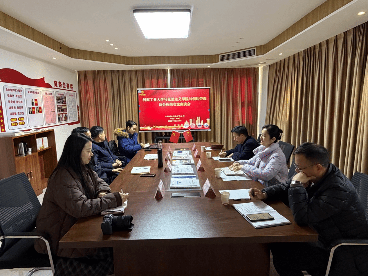理论优势与企业实践需求深度融合。学院教师代表杨卫军教授结合企业发展需求,提出党建理论宣讲、红色文化共建等合作方向,为企业党建与业务融合提供智力支持。中新创达咨询有限公司董事长杨明宇对学院办学成效表示高度认可,他强调,创达咨询秉持“党建引领高质量发展”与“校企合作”双线并行的发展理念,将党建工作与微密圈、人才培养紧密结合,为企业高质量发展提供坚实保障。党支部书记董高峰介绍了公司的“三三二”党建工作法,以及党建与业务深度融合的实践经验。双方围绕党建共建、人才输送、课题研究、教学实践等多个方面达成初步共识。