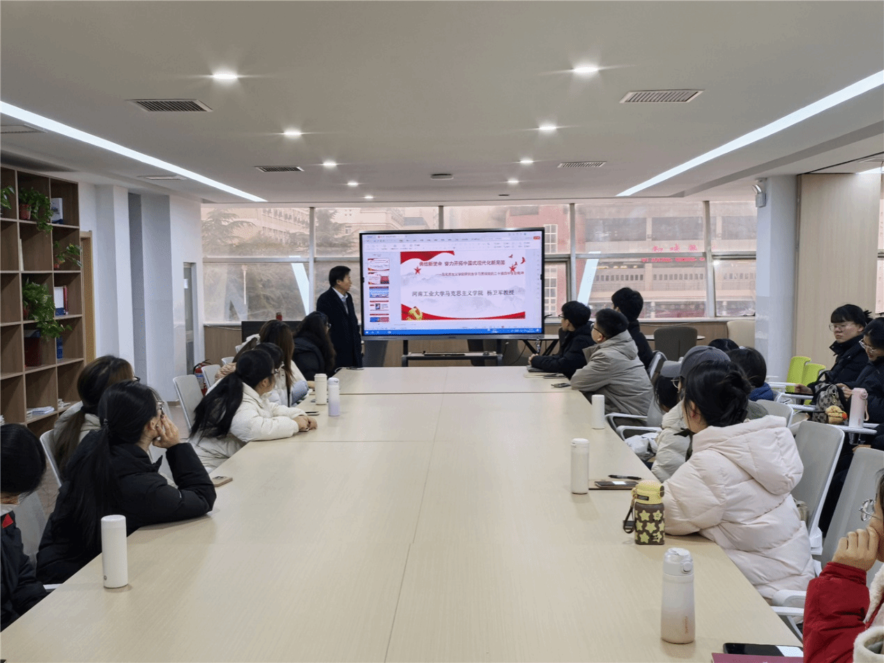 教授杨卫军作了题为《勇担新使命 奋力开拓中国式现代化新局面》的宣讲报告,学院教师代表、硕士研究生聆听了宣讲。报告会由25级研究生班主任刘小飞主持。