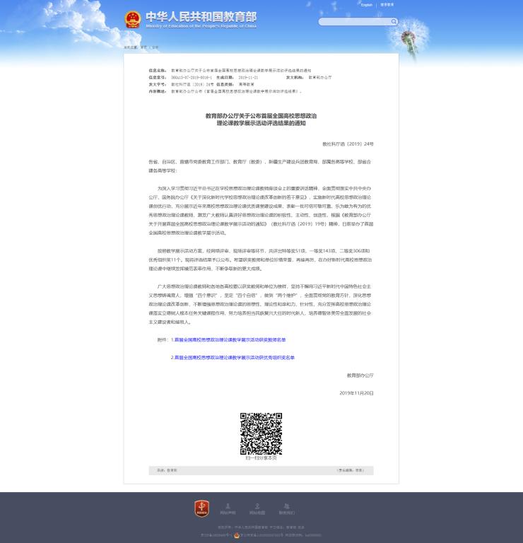 12月4日,教育部社科司网站发布《教育部办公厅关于公布首届全国高校思想政治理论课教学展示活动评选结果的通知》,我校微密圈 教师李海涛获得首届全国高校思想政治理论课教学展示活动特等奖。