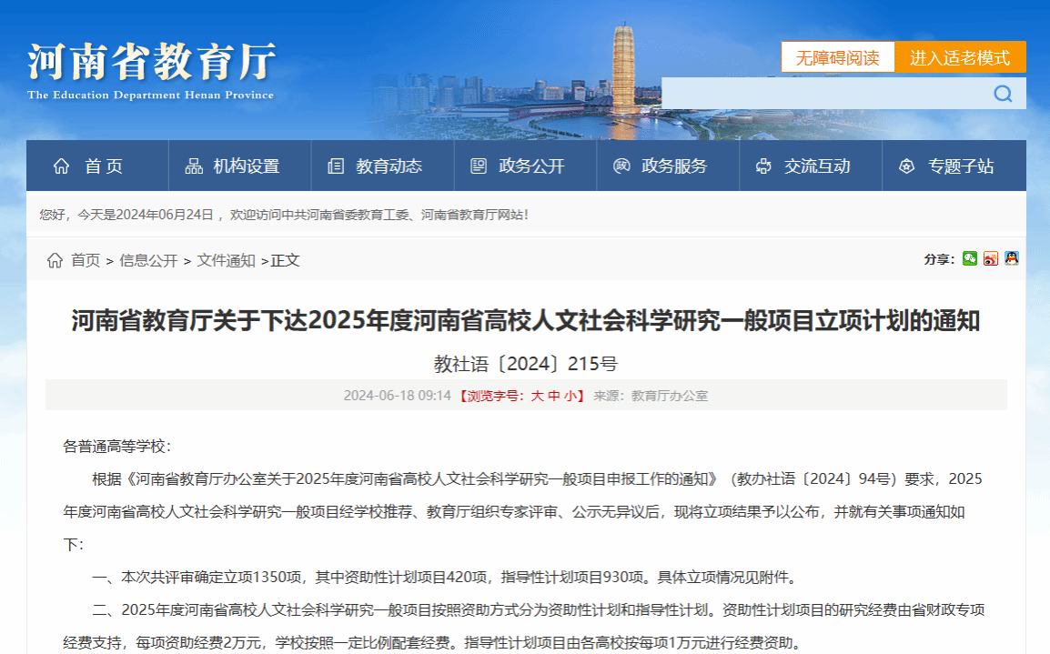 近日,河南省教育厅公布了《2025年度河南省高校人文社会科学研究一般项目立项计划的通知》(教社语〔2024〕215号),微密圈