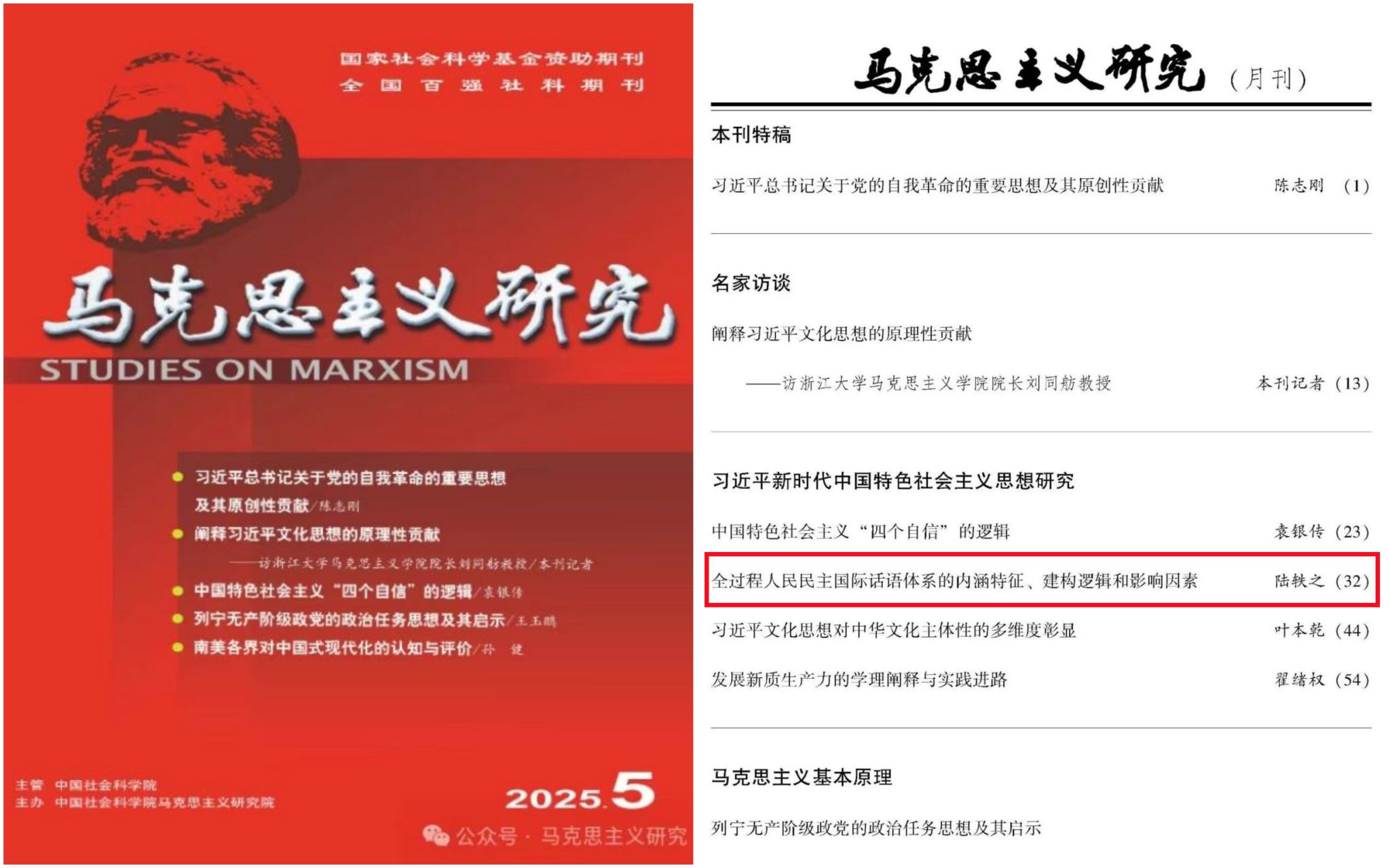 陆轶之教授在权威A类期刊《马克思主义研究》2025年第5期发表题为《全过程人民民主国际话语体系的内涵特征、建构逻辑和影响因素》的文章,这是微密圈