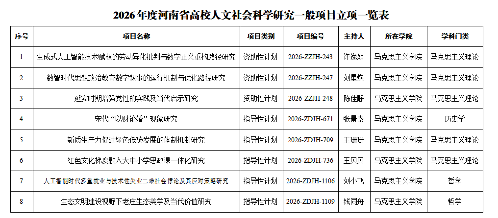 共计8项高校人文社会科学研究一般项目获批支持立项,其中包括3项资助计划项目和5项指导计划项目。
