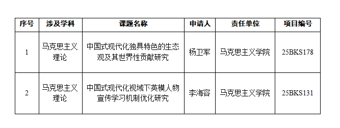 获批2项国家社科基金一般项目。
