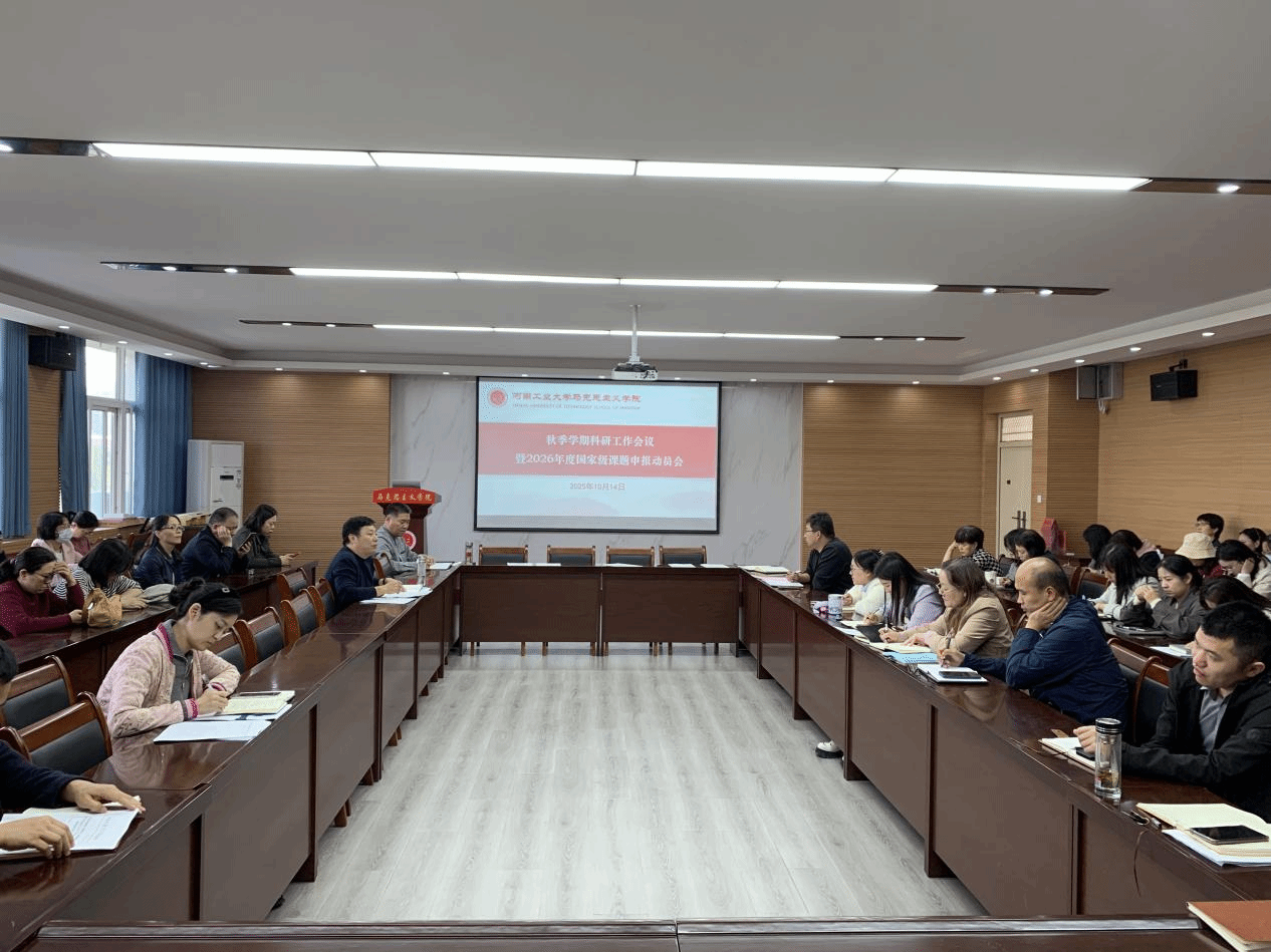 于10月14日在3511会议室召开秋季学期科研工作会议暨2026年度国家级课题申报动员会。学院全体教师参加会议,会议由院长李海涛教授主持。