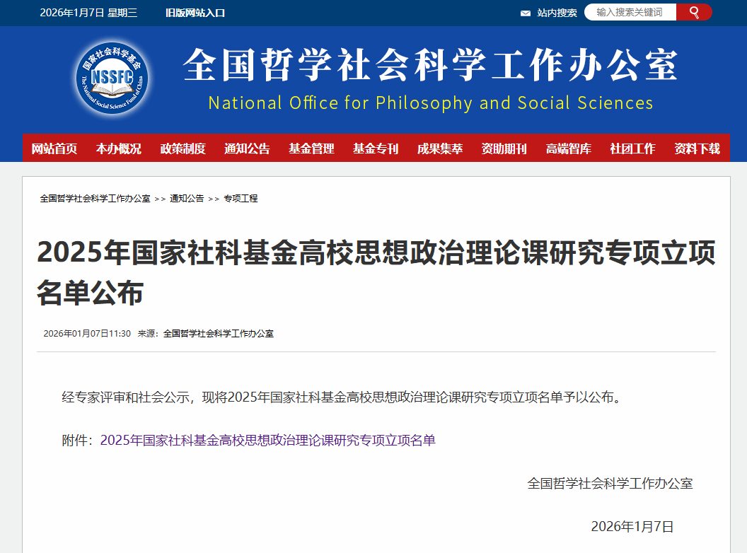 1月7日,全国哲学社会科学工作办公室公布了2025年国家社科基金高校思想政治理论课研究专项立项名单。微密圈