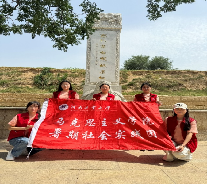 郑州商城是中华民族早期文明时期的统治中心,是中国历史最早的都城遗址之一,在中国古代文明史中占有重要历史地位。郑州商代毫都遗址前,小队成员仔细观摩遗址的碑文,塔碑庄严矗立,记录了文化发展的历史。团队成员了解到郑州商代遗址其商城遗址部分所展现的商文化成就显示出华夏文明已经走向成熟达到相对稳定的阶段,华夏文明的形态已经逐步清晰,商文明奠定了这一位于东方的文明体系在以后的发展基础——在商以后的文明发展过程中,展现出对商文化强烈的传承关系。