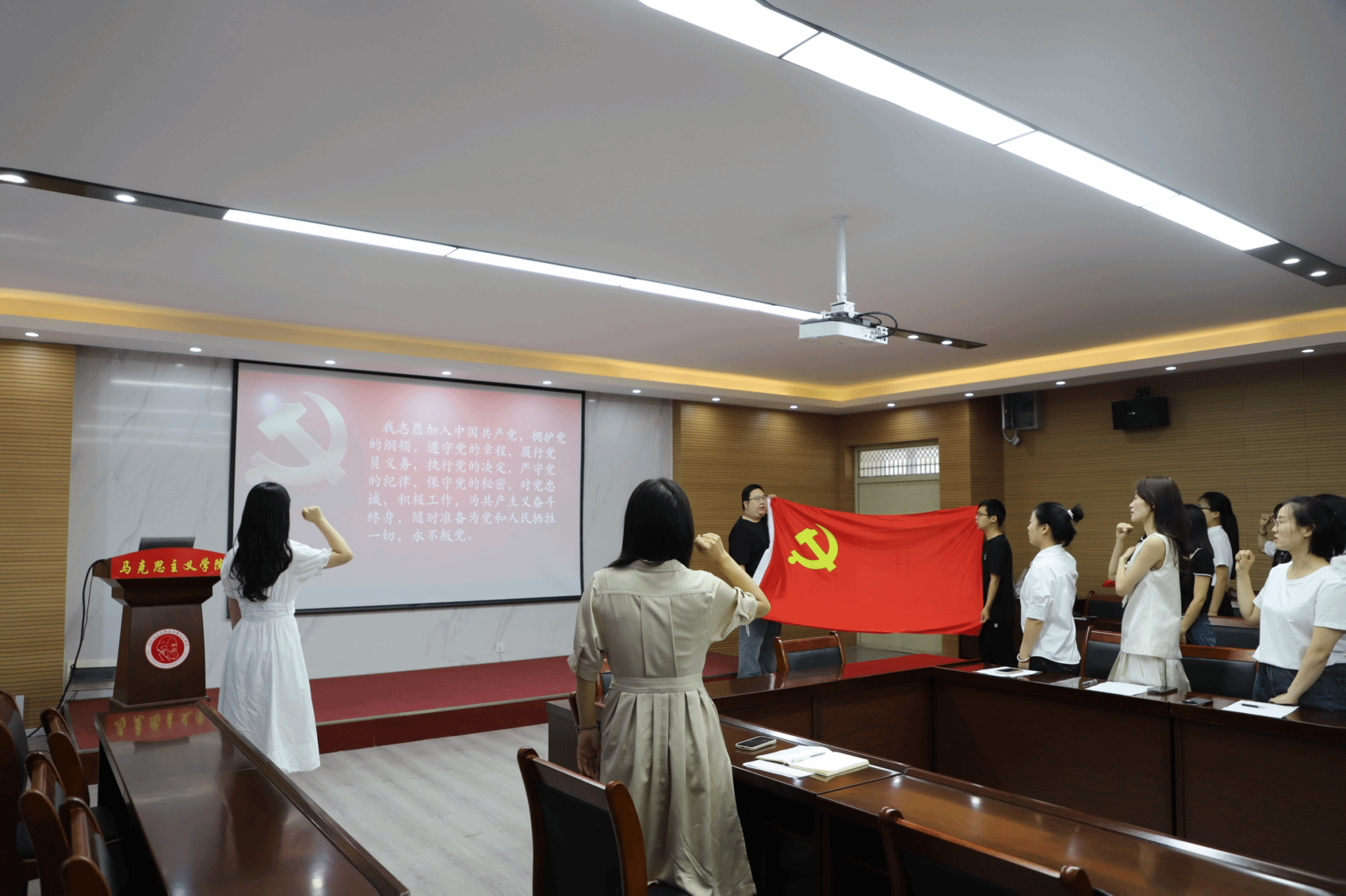 现场,学院与会领导老师和全体毕业生党员面向党旗,一起庄严地重温了入党誓词,在铿锵有力的誓言中,毕业生党员们再次接受了党性的洗礼,进一步坚定了理想信念,增强了共产党员的使命担当。