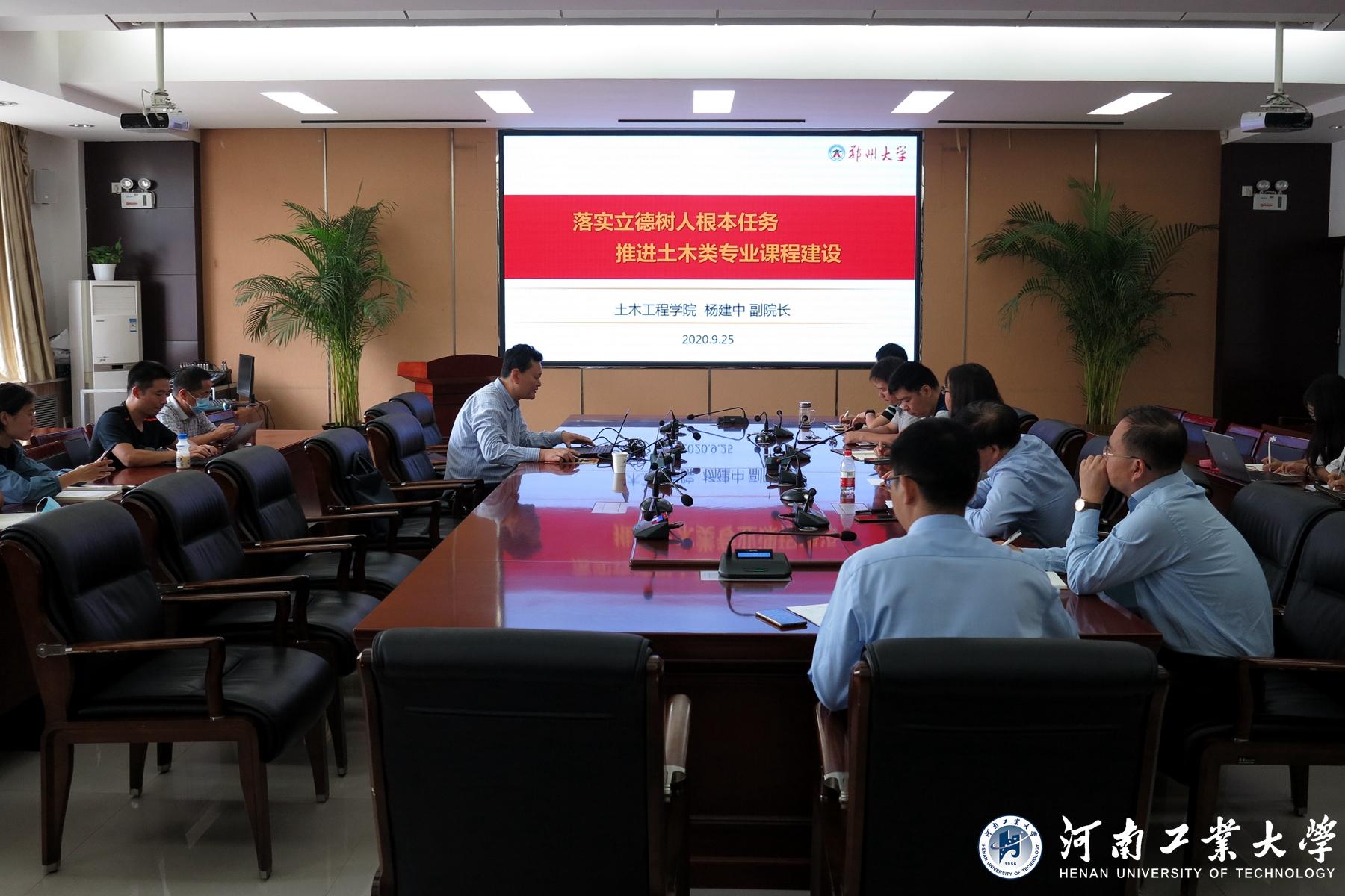 为进一步落实立德树人根本任务,加快推进课程思政和一流专业课程建设,9月25日上午,土木工程(建筑)学院在莲花街校区32208会议室召开了课程思政暨一流专业课程建设培训交流会。郑州大学土木工程学院副院长杨建中,学校教务处处长杨六栓,土木工程(建筑)学院全体领导班子成员以及各系中心主任、一流课程负责人、教学改革项目负责人等老师参加培训交流会。会议由陈桂香院长主持。