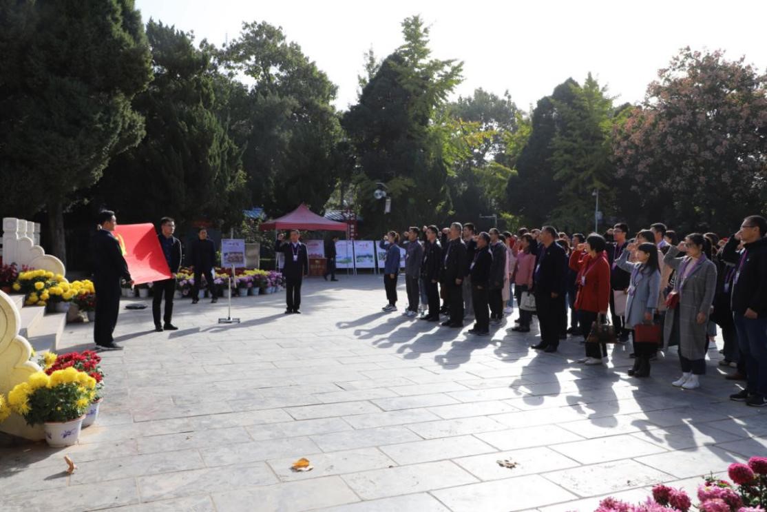 党委书记刘广明代表全体师生党员向焦裕禄同志敬献花篮,党委副书记田军强带领大家集体重温了入党誓词,并绕墓一周瞻仰焦裕禄烈士墓,表达敬仰之情。